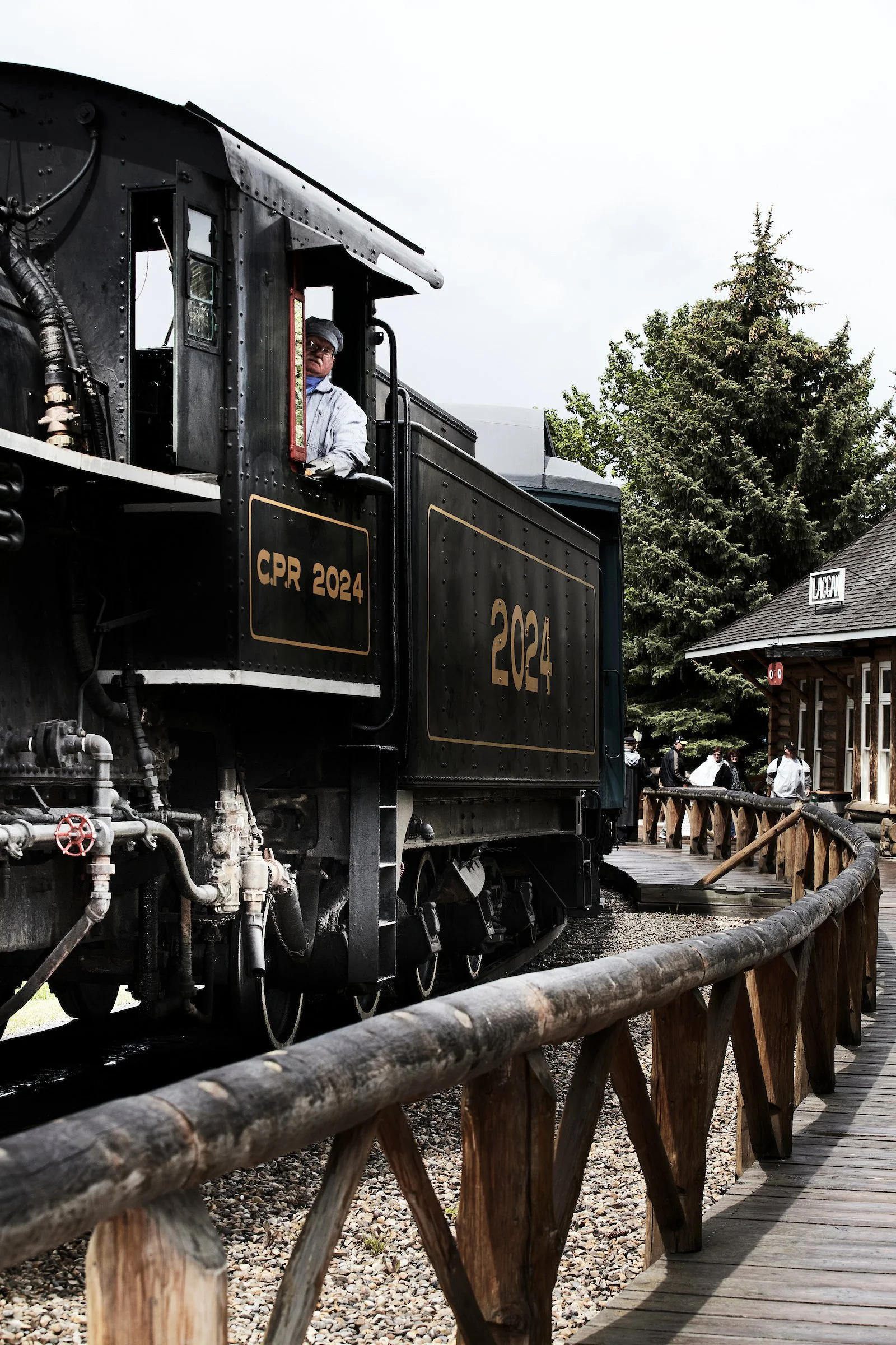 The engine in this frame wears a number—2024—like a badge and a dare. Not a year, not a marketing hook, but a designation that signals how museums sometimes stitch together story and system to make the past legible again. At Heritage Park in Calgary, Locomotives 2023 and 2024 are painted in Canadian Pacific’s pre‑1915 livery even though they were never owned by the Canadian Pacific Railway. Their road numbers were chosen because they fit “blanks” in the CPR numbering system of that era, a curatorial decision that tells you something important: history is never only what happened; it’s also how we decide to remember it. That choice isn’t deception—it’s translation. It’s an invitation for the public to read an artifact within the visual language of the West that built Calgary, a region that learned early that identity is often carried by infrastructure.