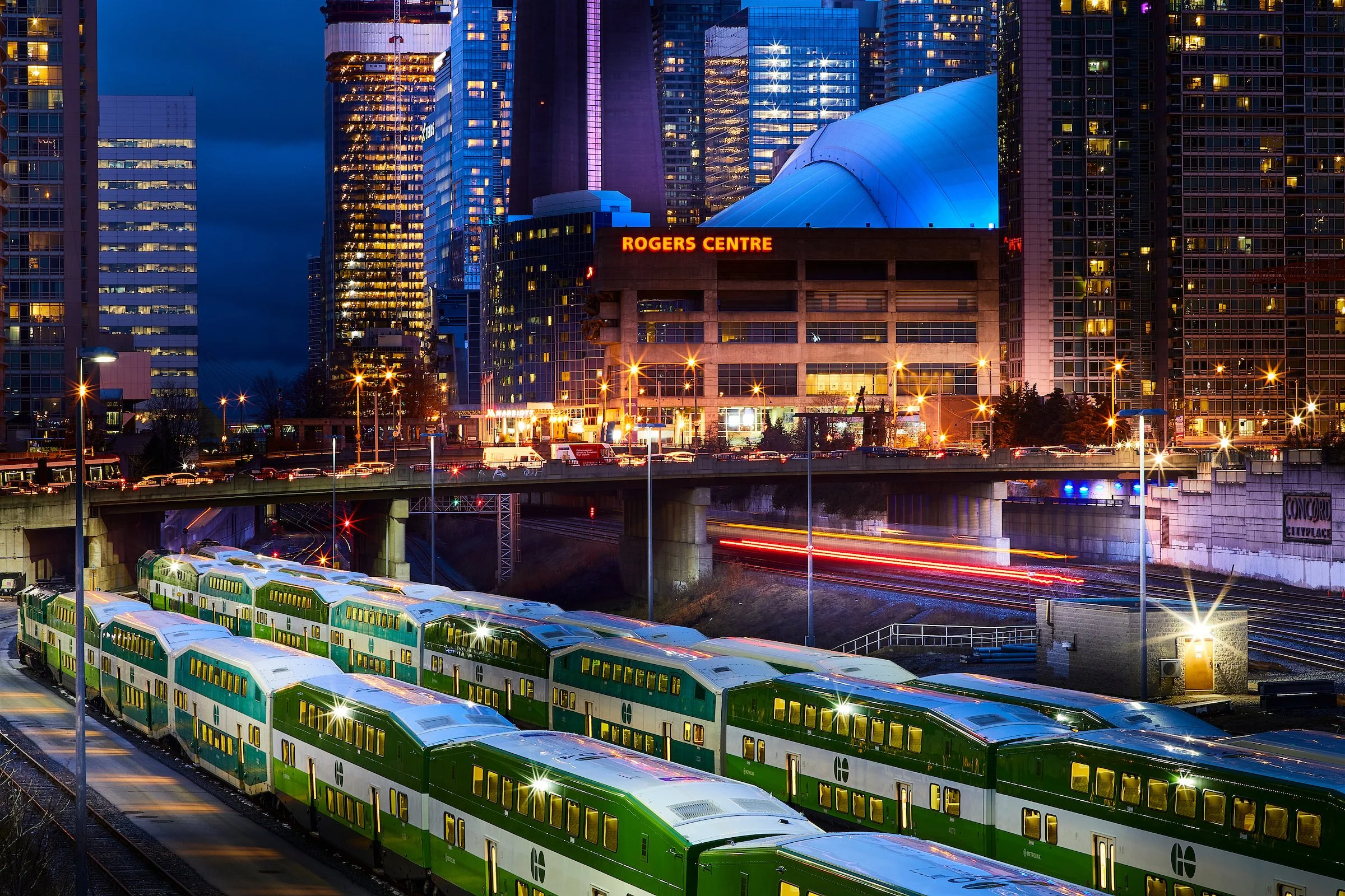 GO Transit Trains at Rogers Centre, Downtown Toronto at Night @Solomon D Crowe